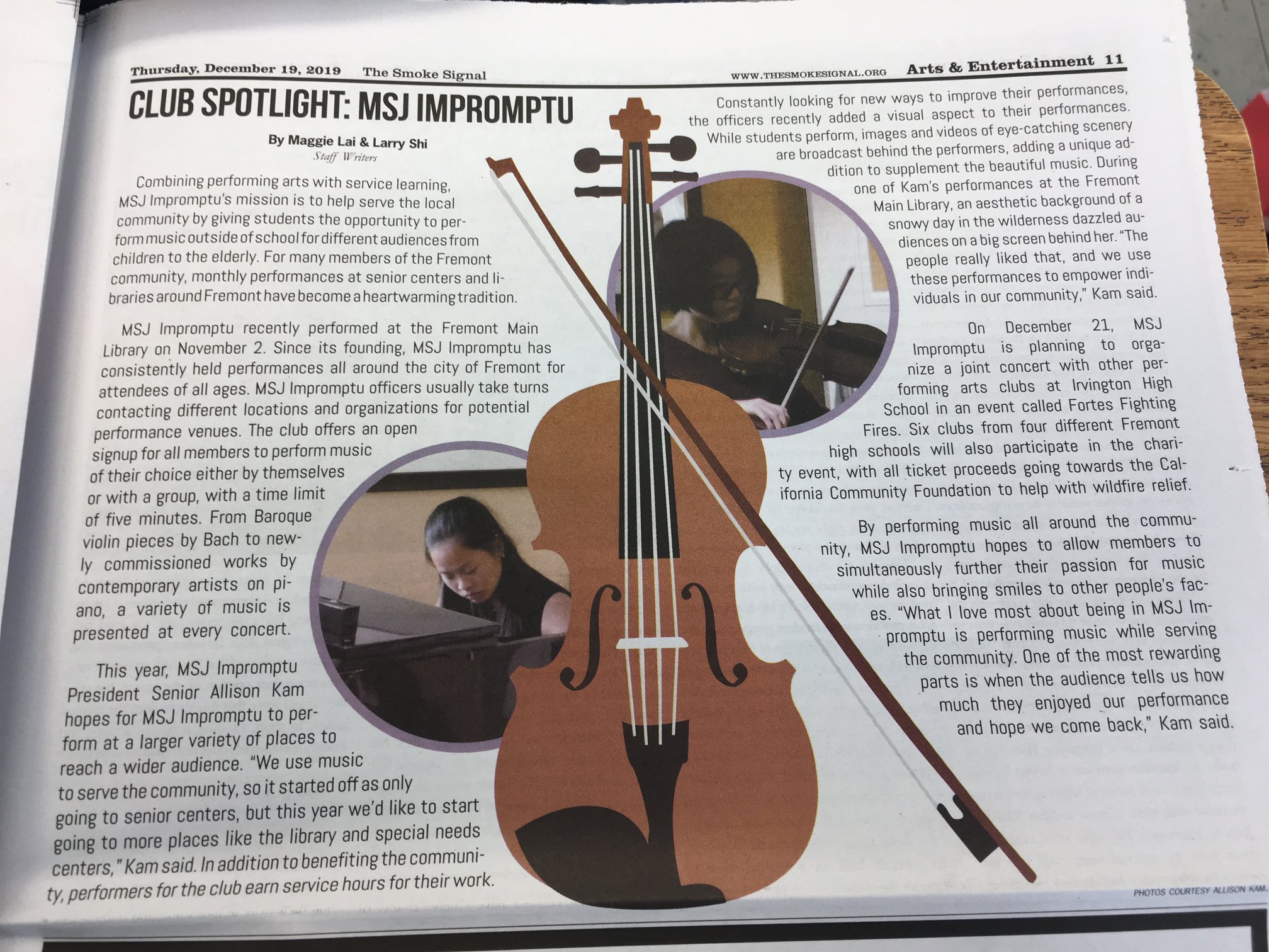 MSJ Impromptu's mission is to spread music throughout the community. Members of Impromptu, performing on a variety of different instruments or voice, volunteer their talents to the local area during periodic student-arranged performances. As musical outreach grows, the club intends to expand its network to a larger level and collaborate with musicians of other communities to foster further musical awareness and appreciation.